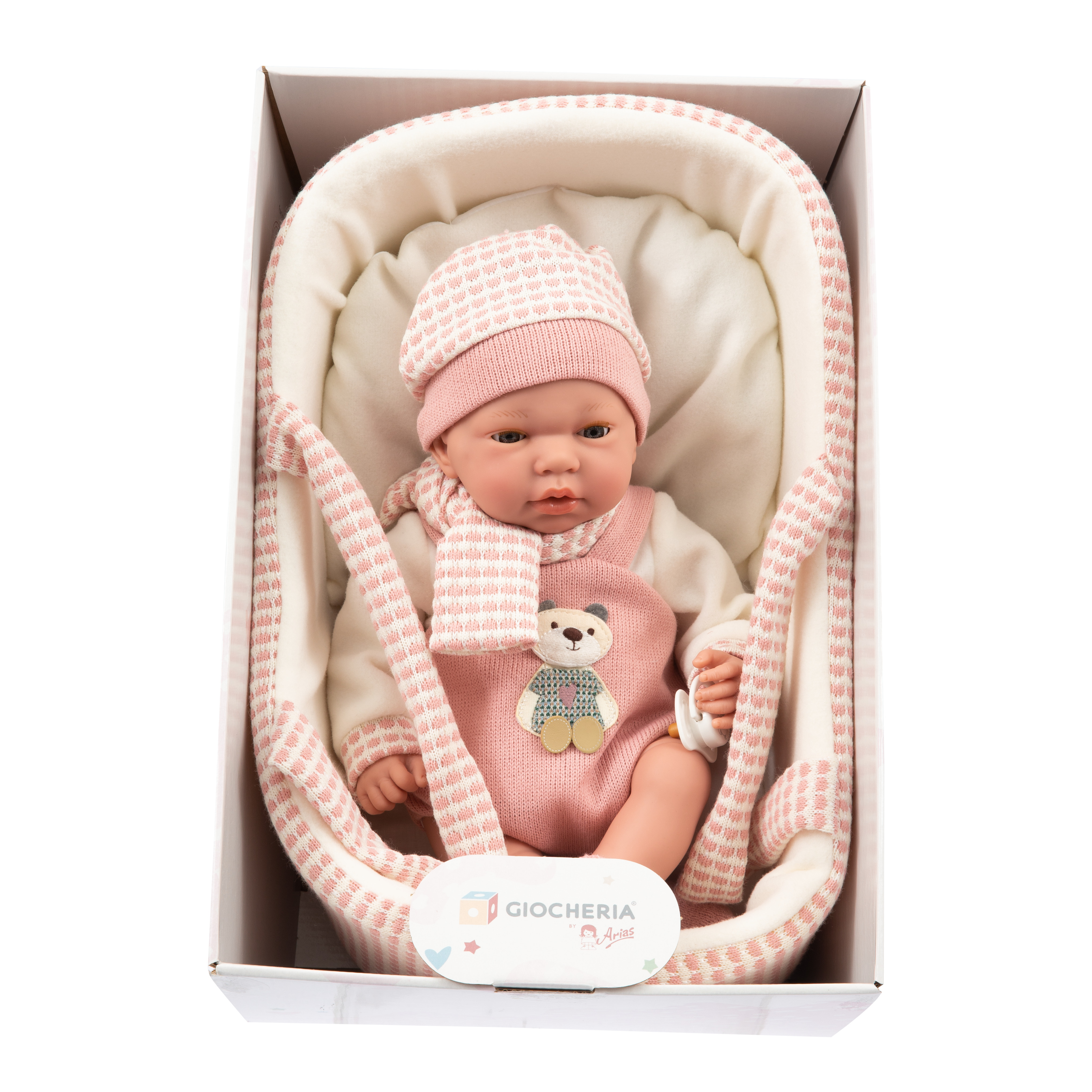 ARIAS - Bebè ROSA cm.40 in Culla PIANGENTE 60238 Morbido