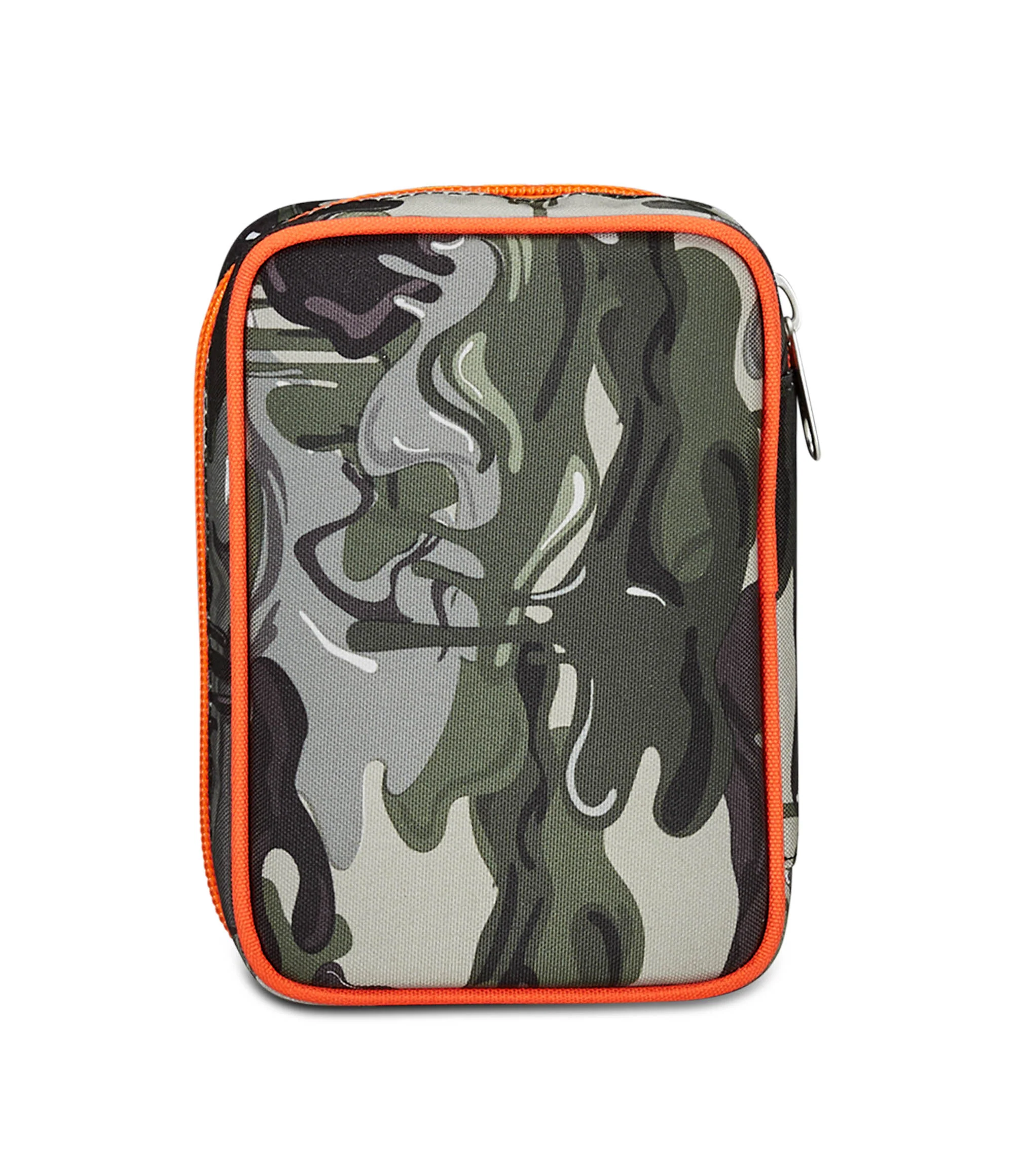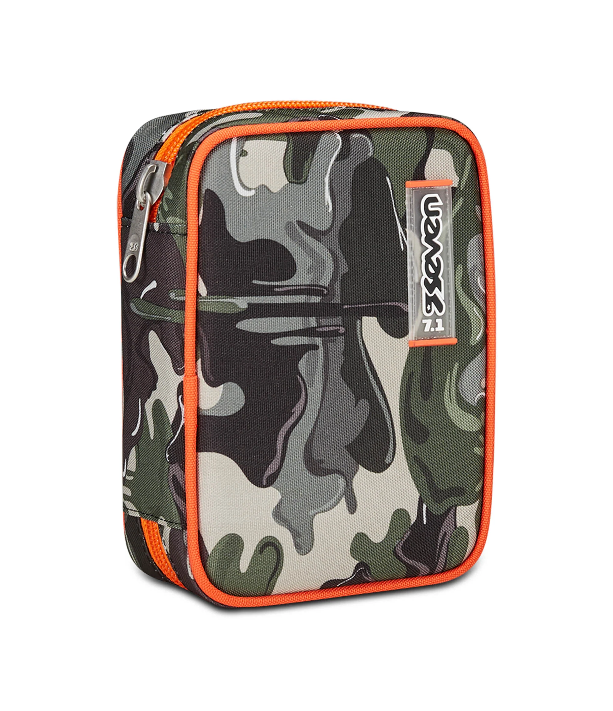Apertura singola tramite maxi zip, plance interne amovibili e agganci flessibili in gomma per cancelleria. CONTENUTO 44 PEZZI: 18 Pastelli a colori,18 Pennarelli, 1 Penna cancellabile blu, 1 Penna a sfera rossa, 1 Matita HB, 1 Gomma, 1 Temperino barilotto a 2 fori, 1 Colla stick, 1 Righello, 1 Paio di Forbici in metallo