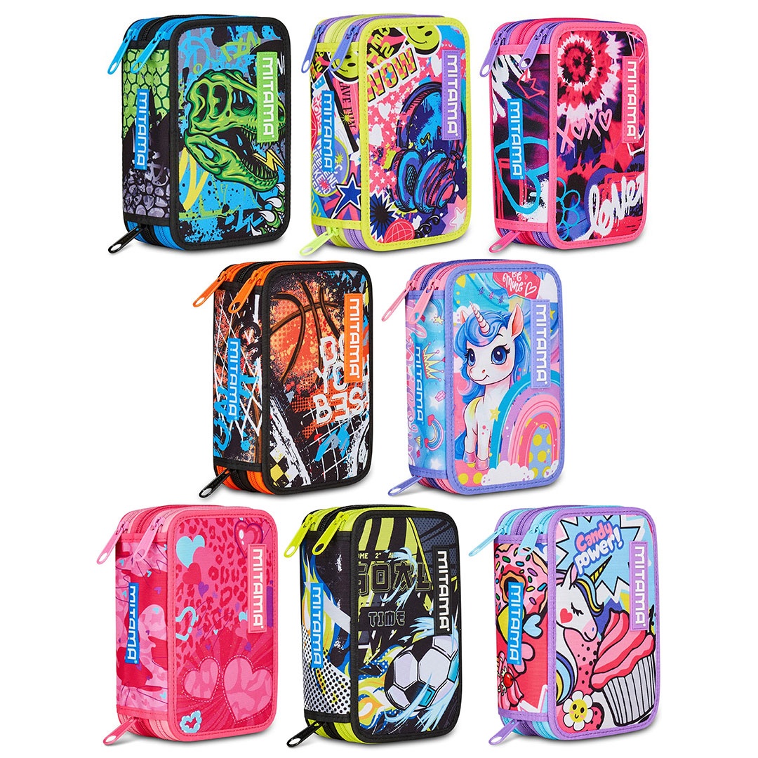 L'Astuccio Triplo Girl/Boy di Mitama ha 3 scomparti con tutto il materiale necessario per affrontare la tua giornata di scuola. All'interno degli scomparti sonostati applicati divisori elastici, per riporre ordinatamente penne, matite, colori e tanto altro. A te non resta altro che abbinarlo a uno zaino o a un trolley Mitama. Scopri tutte le grafiche coloratissime e super cool!
