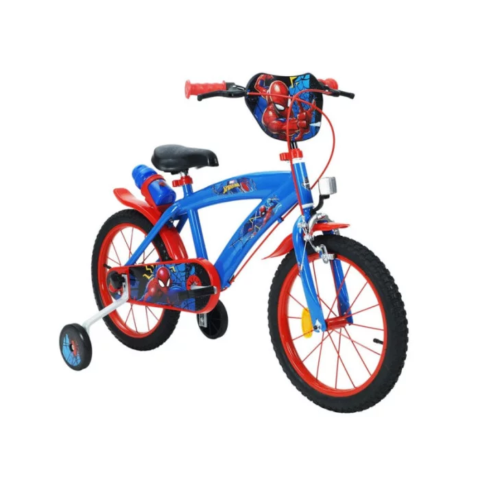 La bicicletta è completa con un frontalino decorato, catadiottri per la sicurezza, una borraccia e stabilizzatori per una guida sicura.