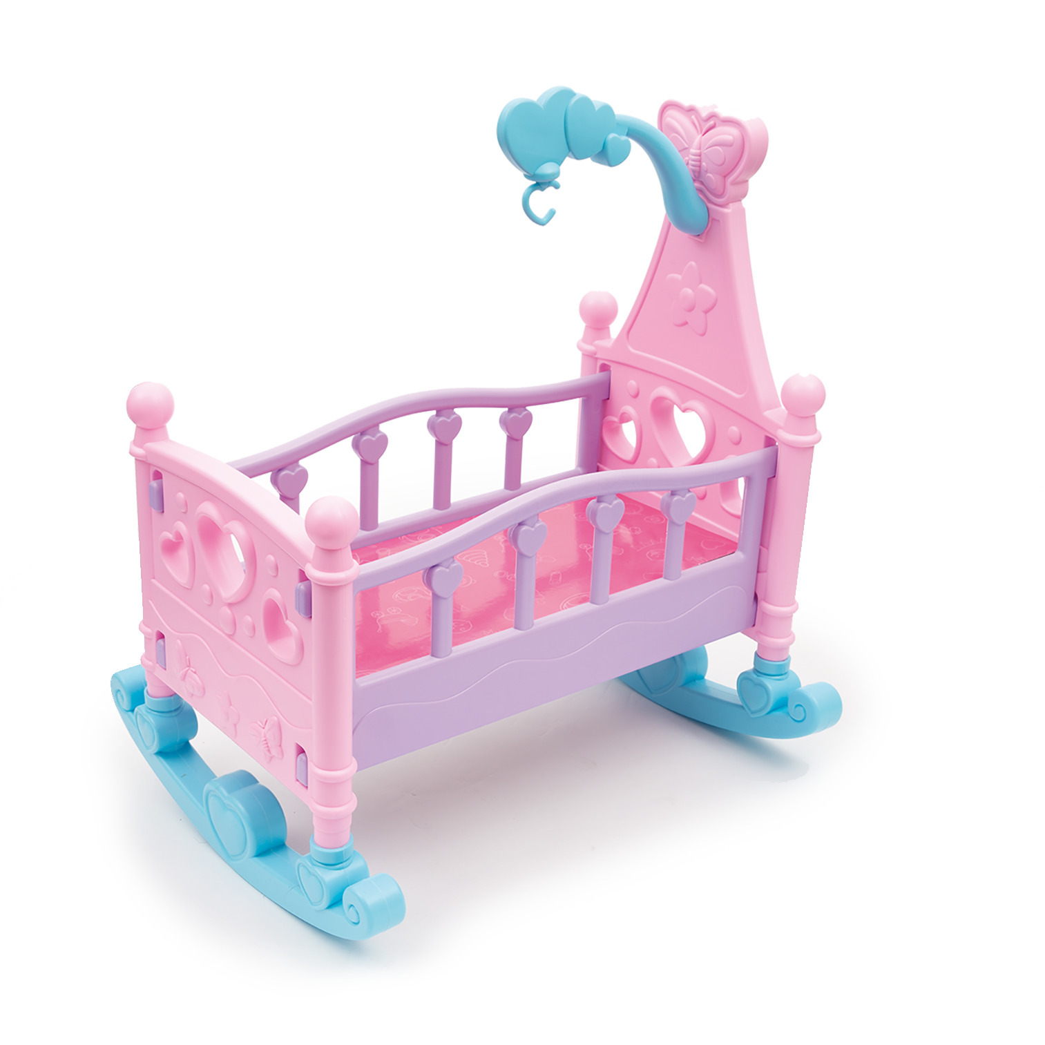 Culla a dondolo per bambola, con gancio per il carillon. Facile da montare.