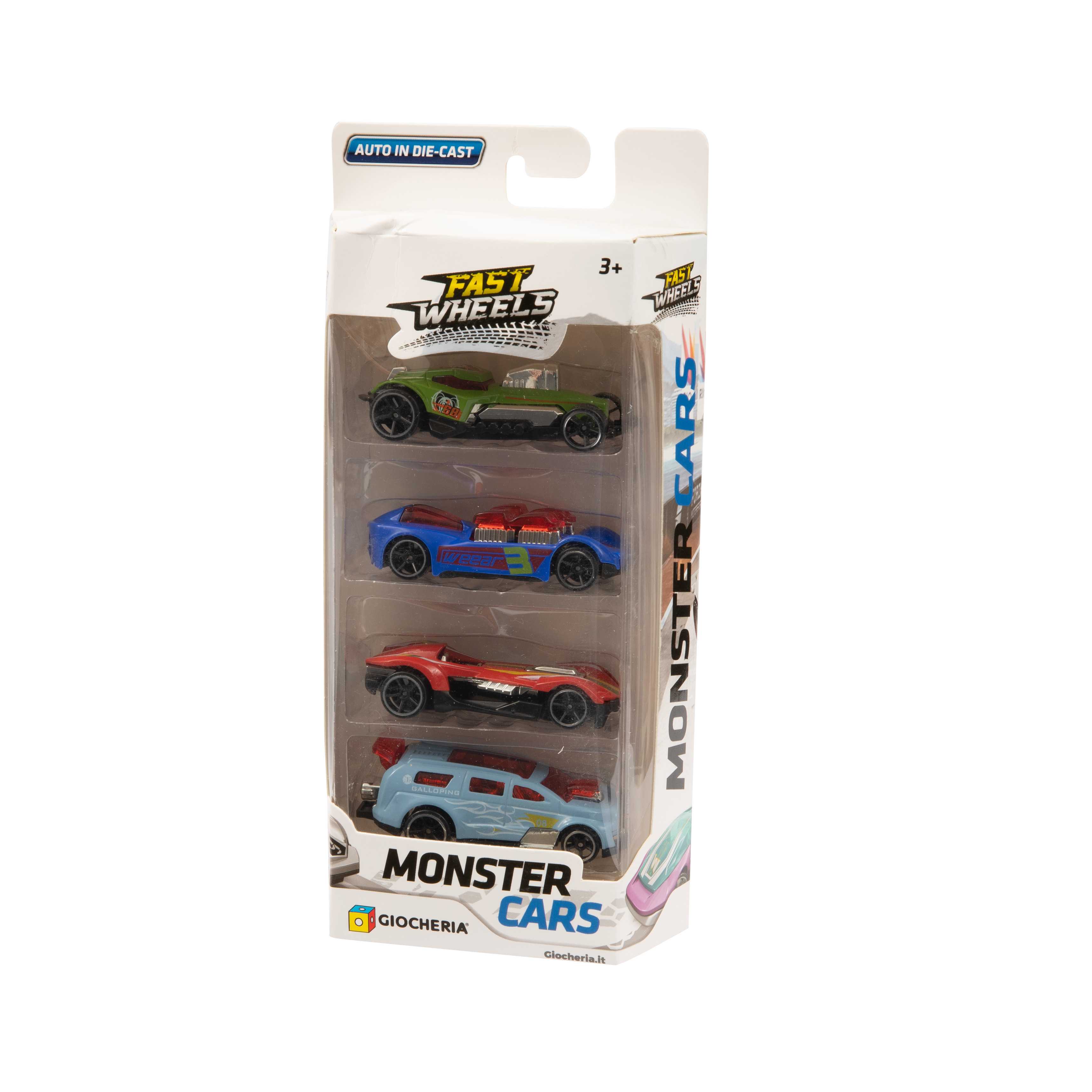 FAST WHEELS - MONSTER CARS Auto Die Cast Blister 4 pezzi 8 Mode