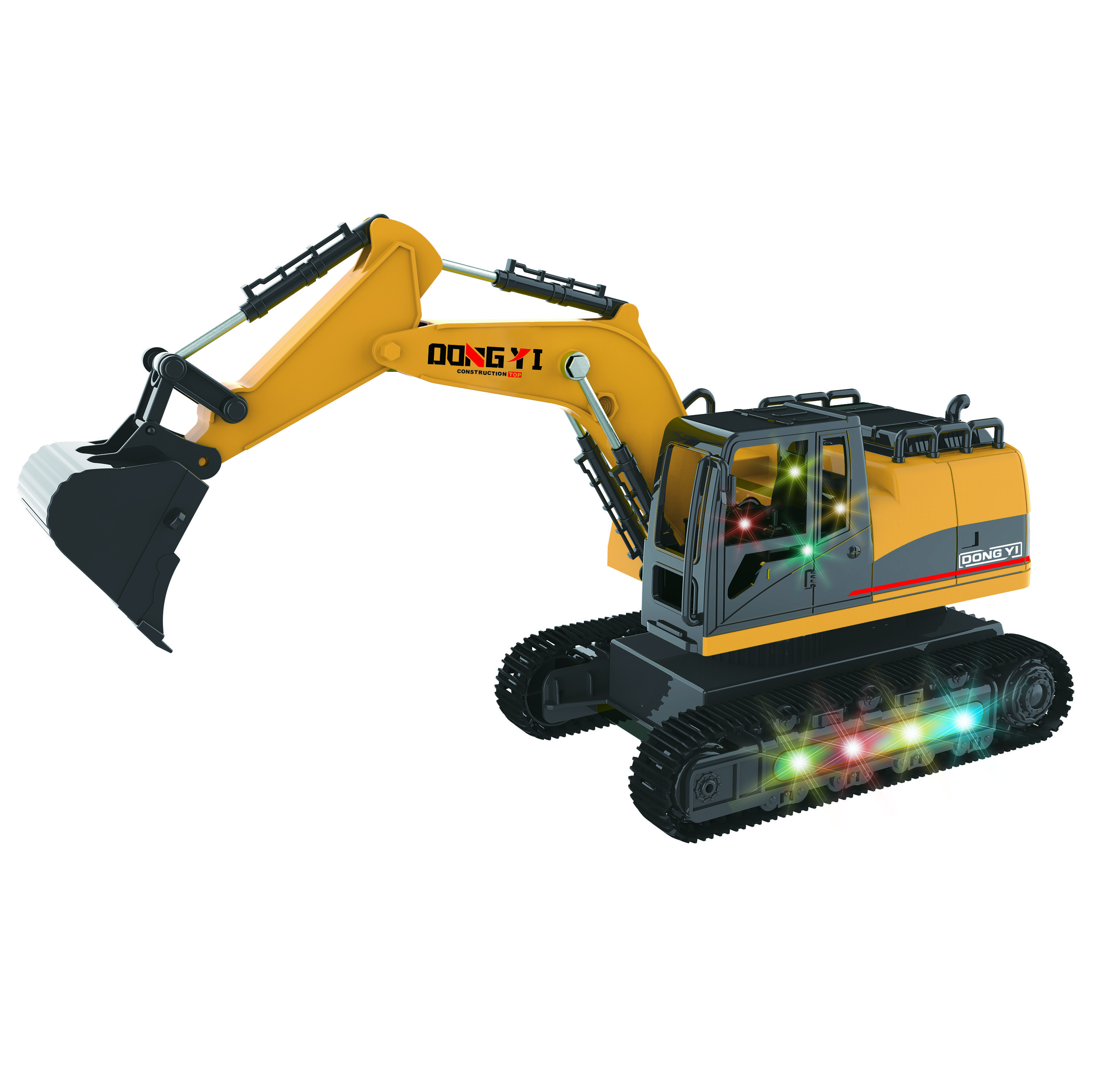 Ruspa radiocomandata con luci e suoni, con braccio di lavoro oscillante e cabina di controllo girevole su sé stessa.