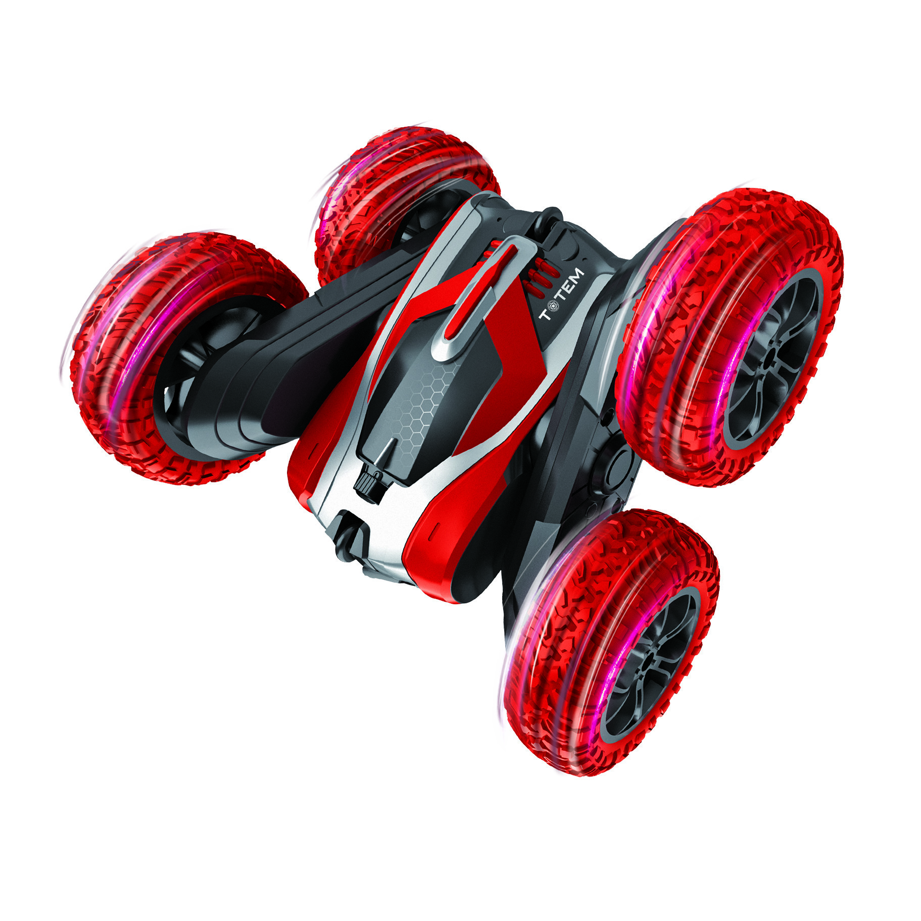 Veicolo radiocomandato con corpo double face , luci led e radiocomando. Può raggiungere una velocità di 15 km/h e il radiocomando arriva fino a 15m. Ha ruote 4x4, può affrontare pendenze di 45° e salta e ruota su se stesso a 360°.