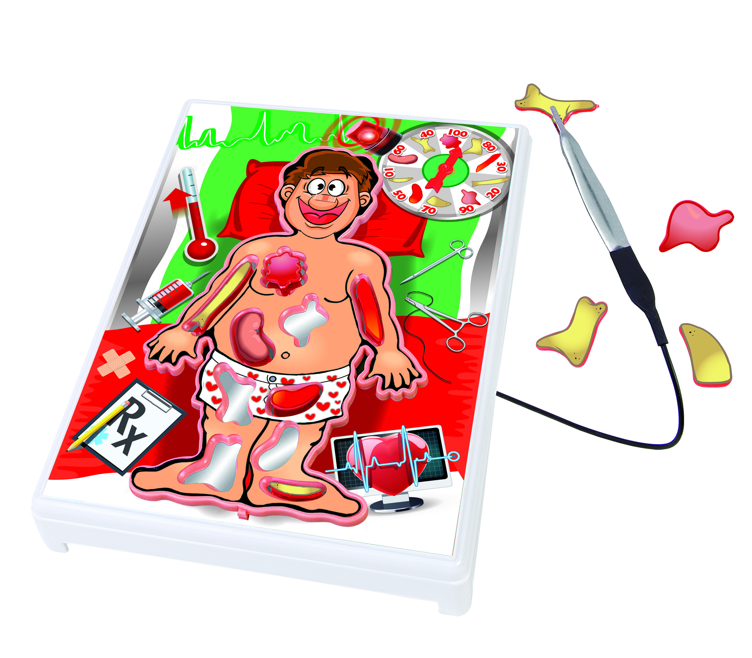 A turno, ogni giocatore dovrà operare il paziente, cercando di estrarre un organo senza toccare le parti in metallo per non farlo tremare. Num. Giocatori: 2-4