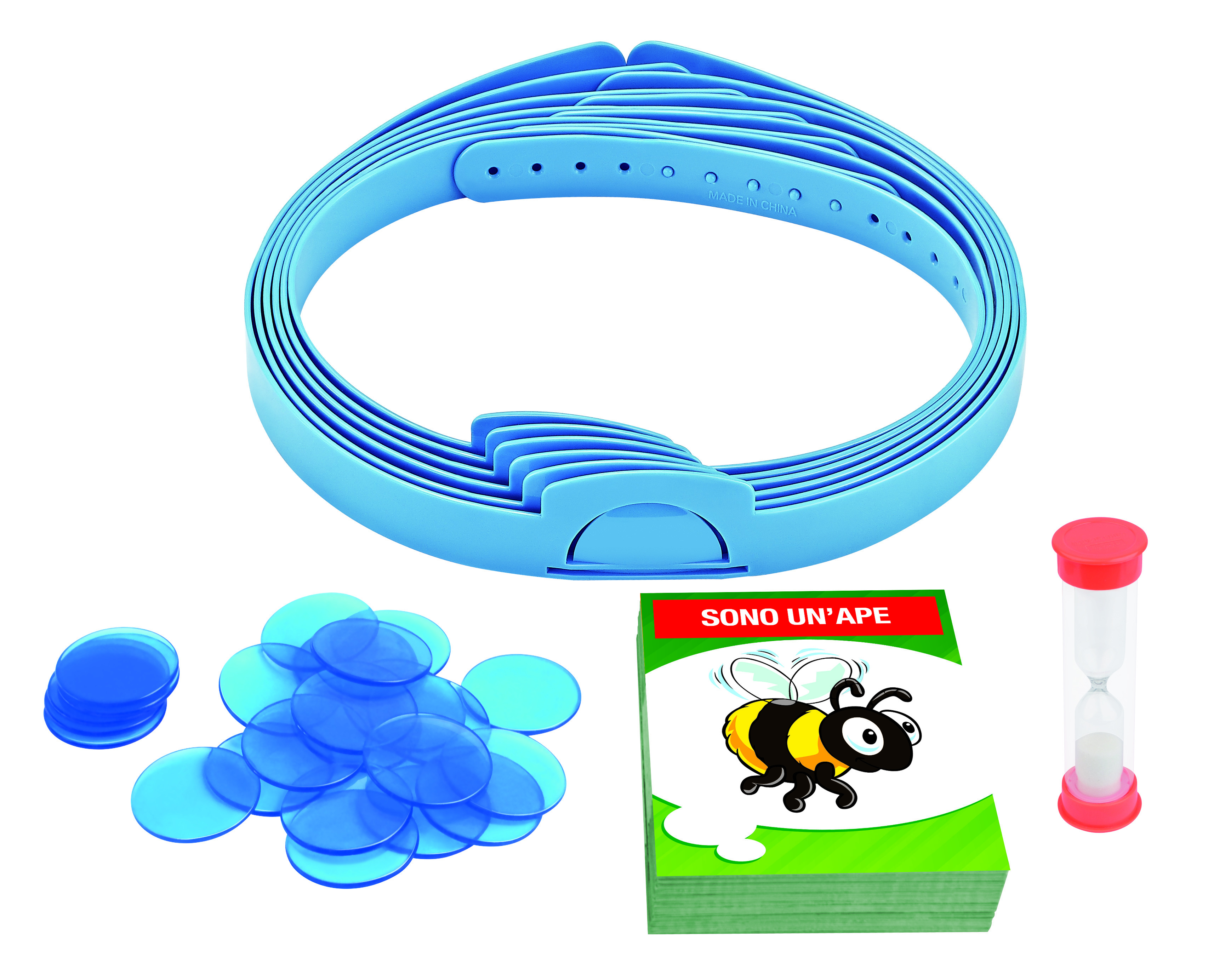 Ogni giocatore tiene in testa una carta identificativa, che dovrà indovinare facendo domande agli avversari. Include 6 cerchietti porta carte, 72 carte, 24 pedine segnapunti e 1 clessidra. Num. Giocatori: 2-6