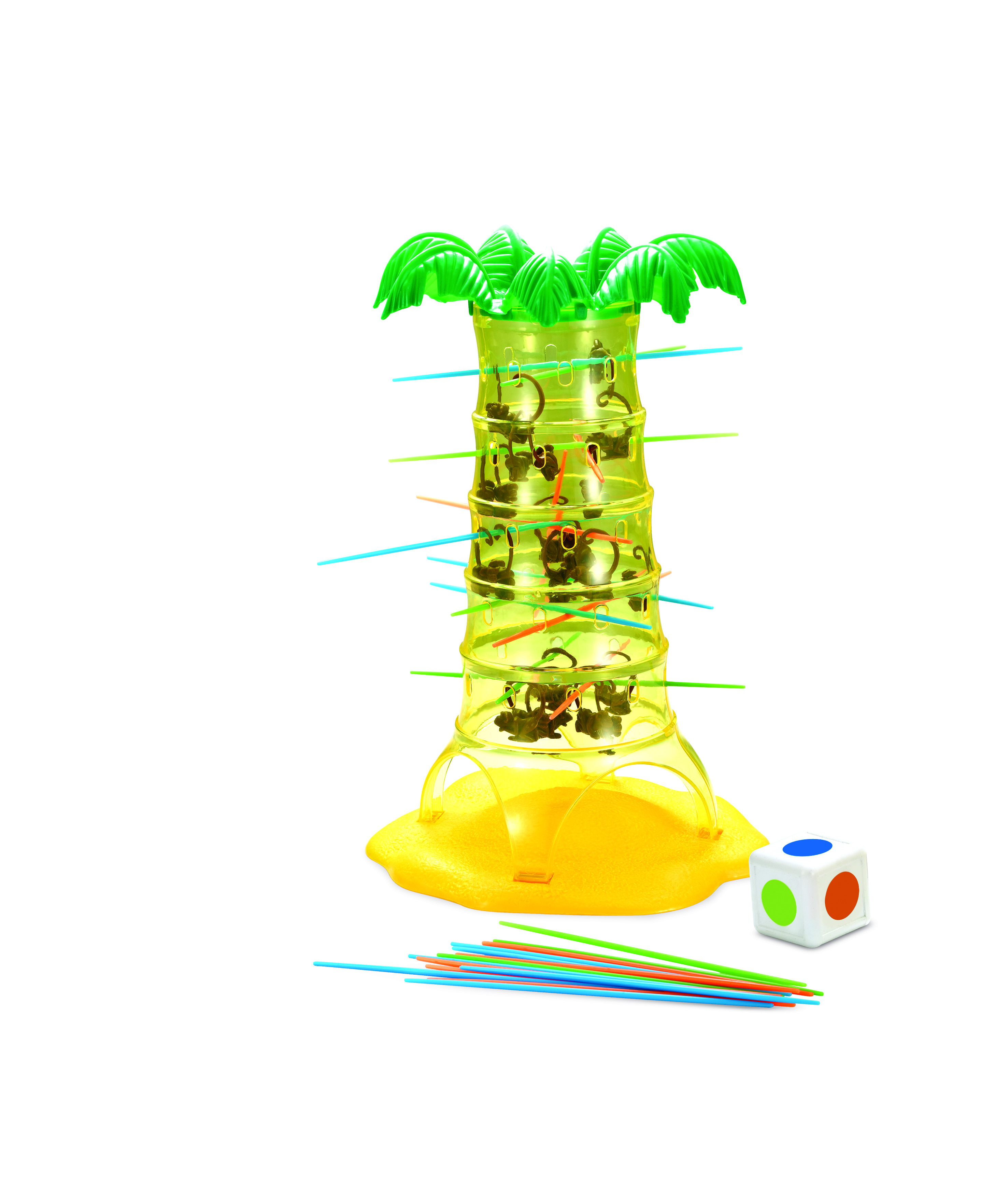 L’albero si riempie di scimmie e un giocatore alla volta dovrà rimuovere i bastoncini colorati dal tronco, cercando di non far cadere le scimmie! La confezione include 1 base di gioca a forma di albero, 30 scimmie, 1 dado e 30 bastoncini in 3 colori diversi. Num. Giocatori: 2-4
