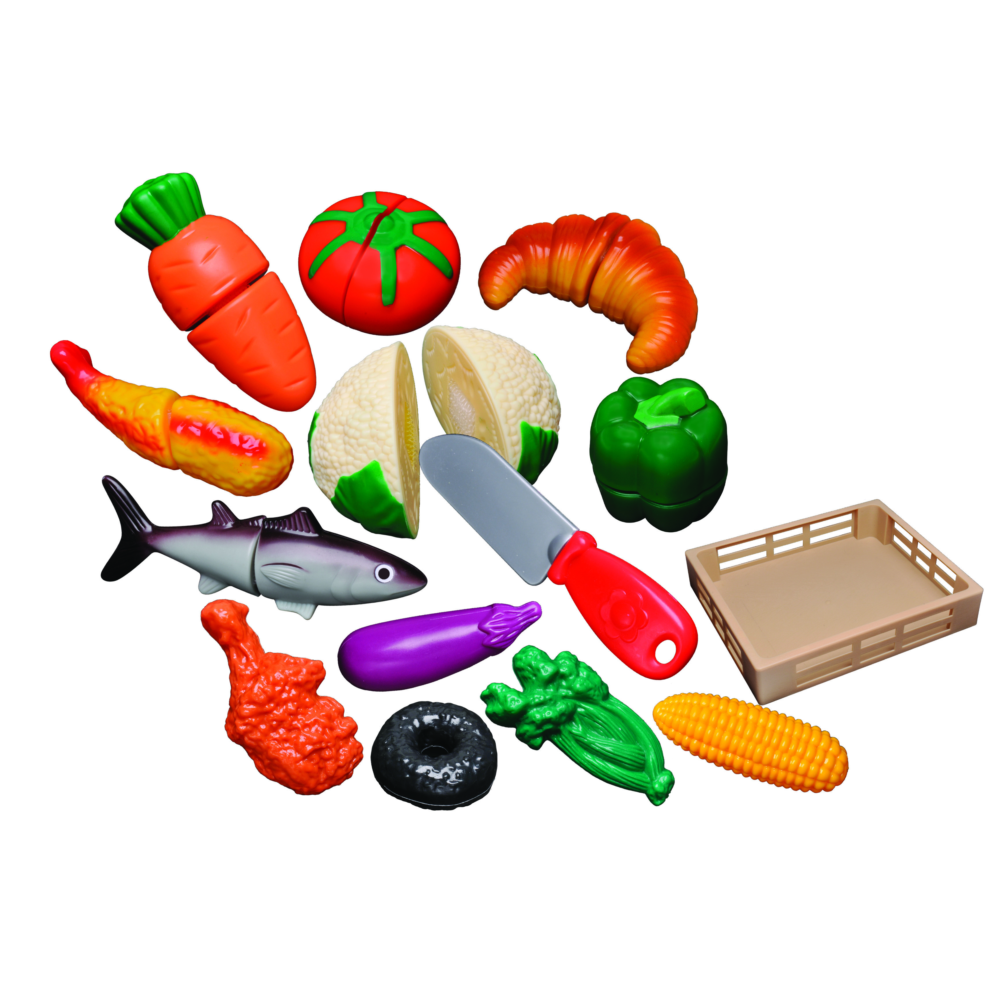 Set con 21 alimenti giocattolo.