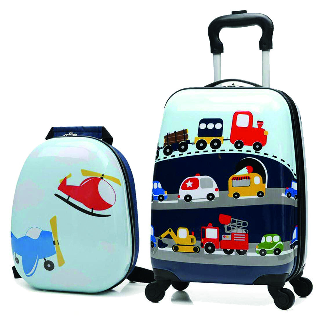 Trolley e zainetto in ABS a tema città. Dimensione trolley 32x22x46 cm . 4 ruote e una comoda maniglia in PVC. Dimensioni zainetto 33x12x25 cm.