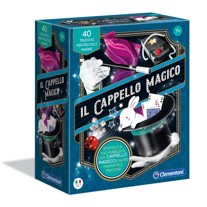 E per il gran finale da perfetto illusionista, ecco il fantastico Cappello Magico da cui far comparire un foulard colorato... et voilà, il gioco è fatto!