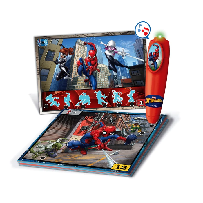 Un divertente gioco a schede con oltre 200 quiz educativi da risolvere con la simpatica penna elettronica di Ultimate Spider-man.