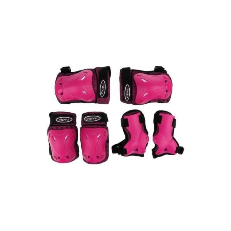 Kit di protezione rosa per ginocchia, polsi e gomiti.