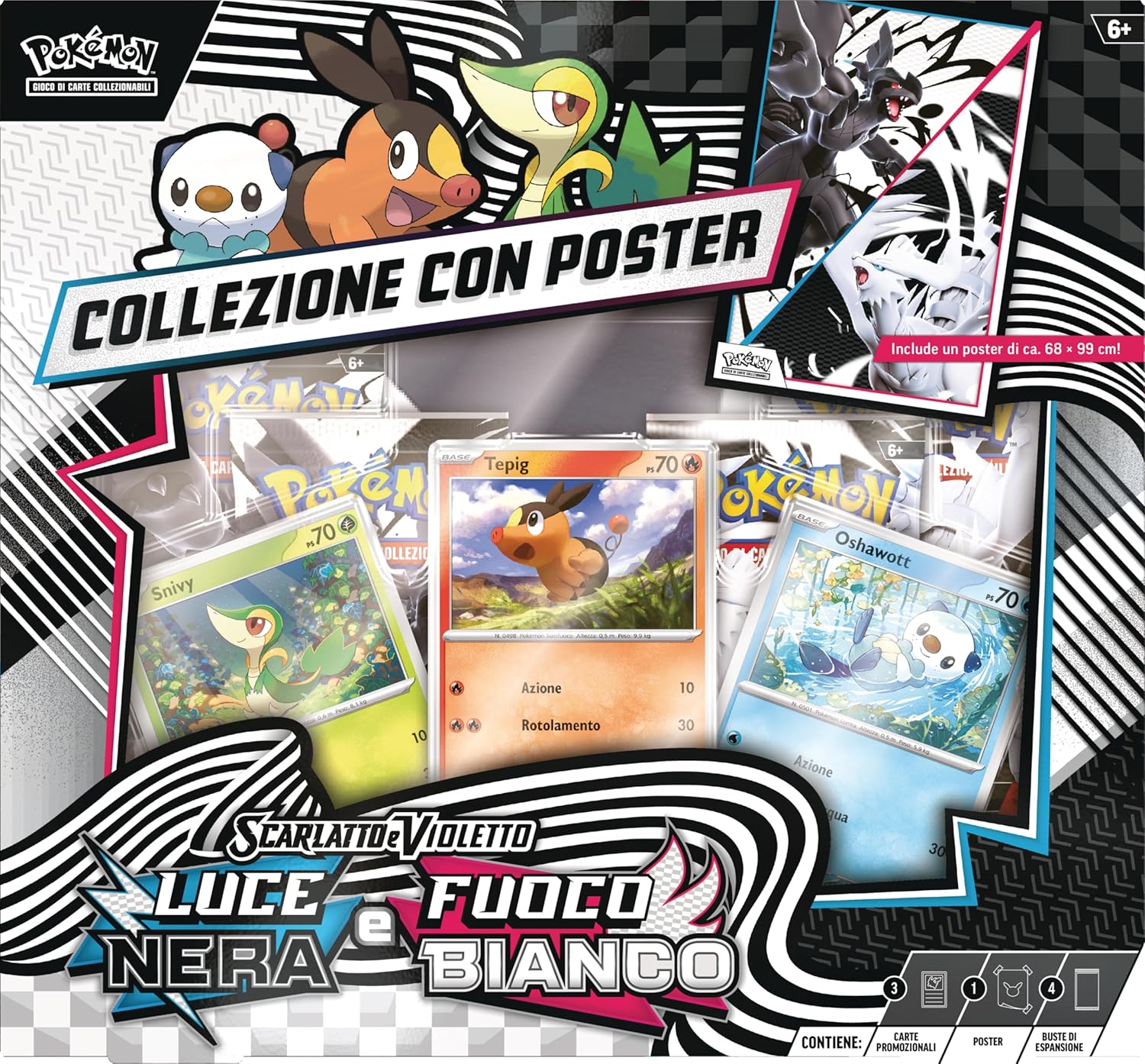Questa collezione contiene inoltre due buste dell’espansione Scarlatto e Violetto - Luce Nera del GCC Pokémon e due dell’espansione Scarlatto e Violetto - Fuoco Bianco del GCC Pokémon.