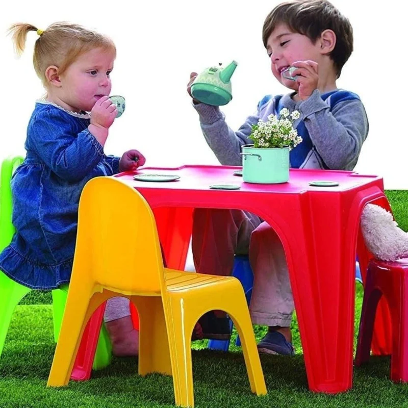 Tavolo per Bambini con 4 sedie, Tavolino da Picnic. Il Mini Tavolo per Bimbi con 4 sedioline è ideale per le uscite in aria aperta, I bambini possono giocare in compagnia grazie alle 4 comode sedie. Ideale per Bambini a partire da 12 mesi in sù. Il tavolo è alto 39 cm e le sedie hanno un’altezza di seduta di 21 cm.
