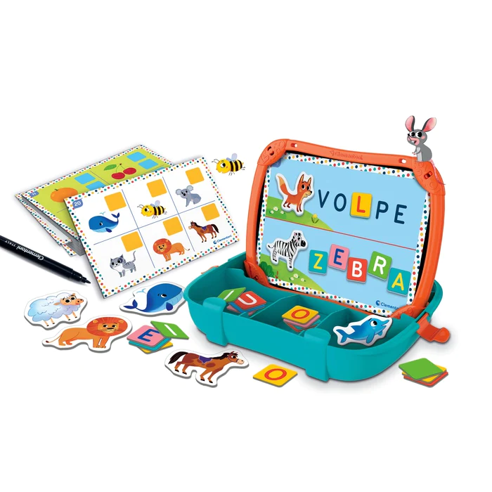 Il bambino potrà divertirsi con i magneti e consolidare la conoscenza dei temi affrontati alla scuola dell'infanzia, come ad esempio l'alfabeto e gli animali.