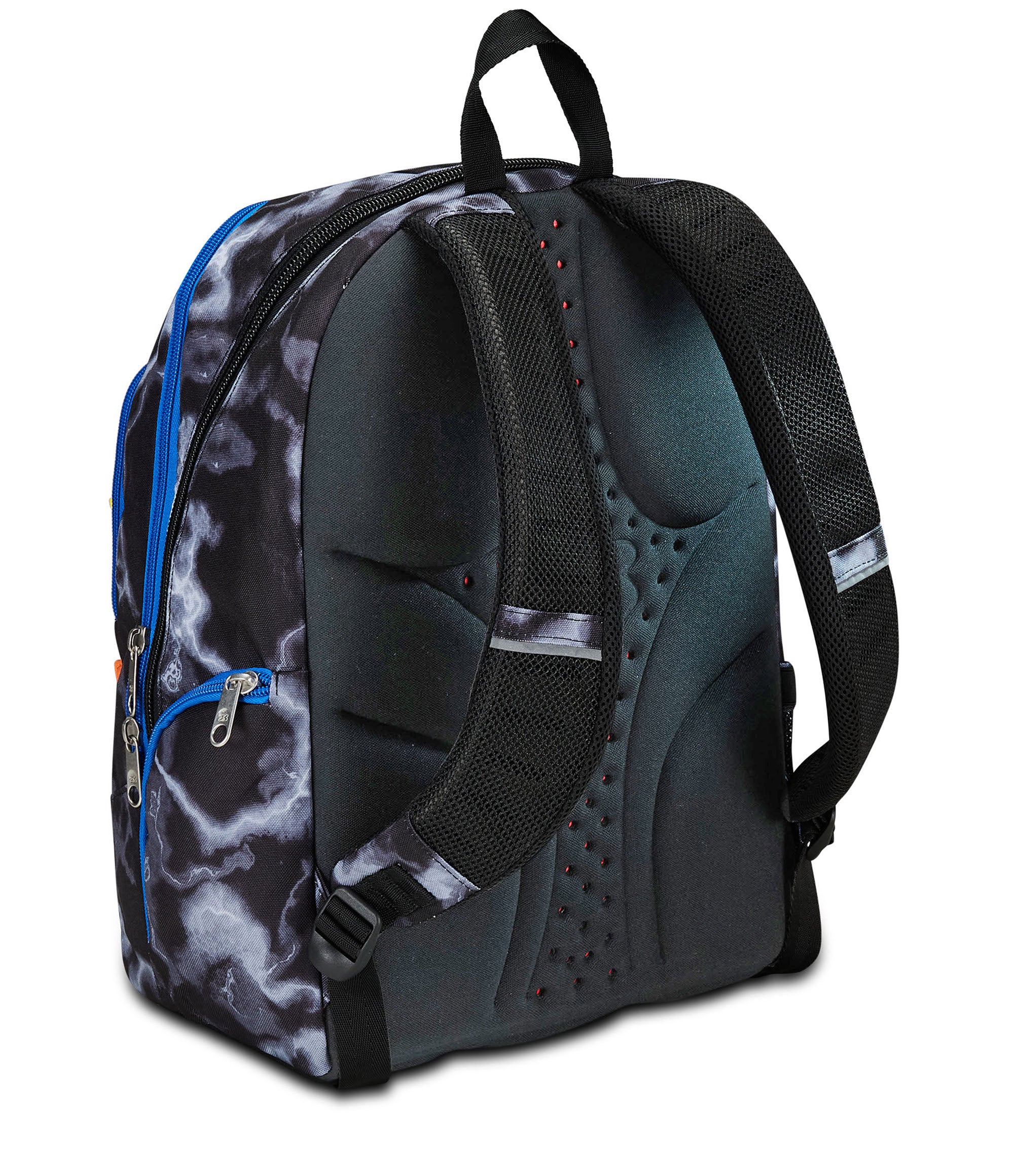 Tasca interna porta PC/tablet, tasche laterali: una chiusa con zip ed una in rete porta borraccia, tasca frontale con organizer, doppia tasca su facciata frontale, secret pocket interna.