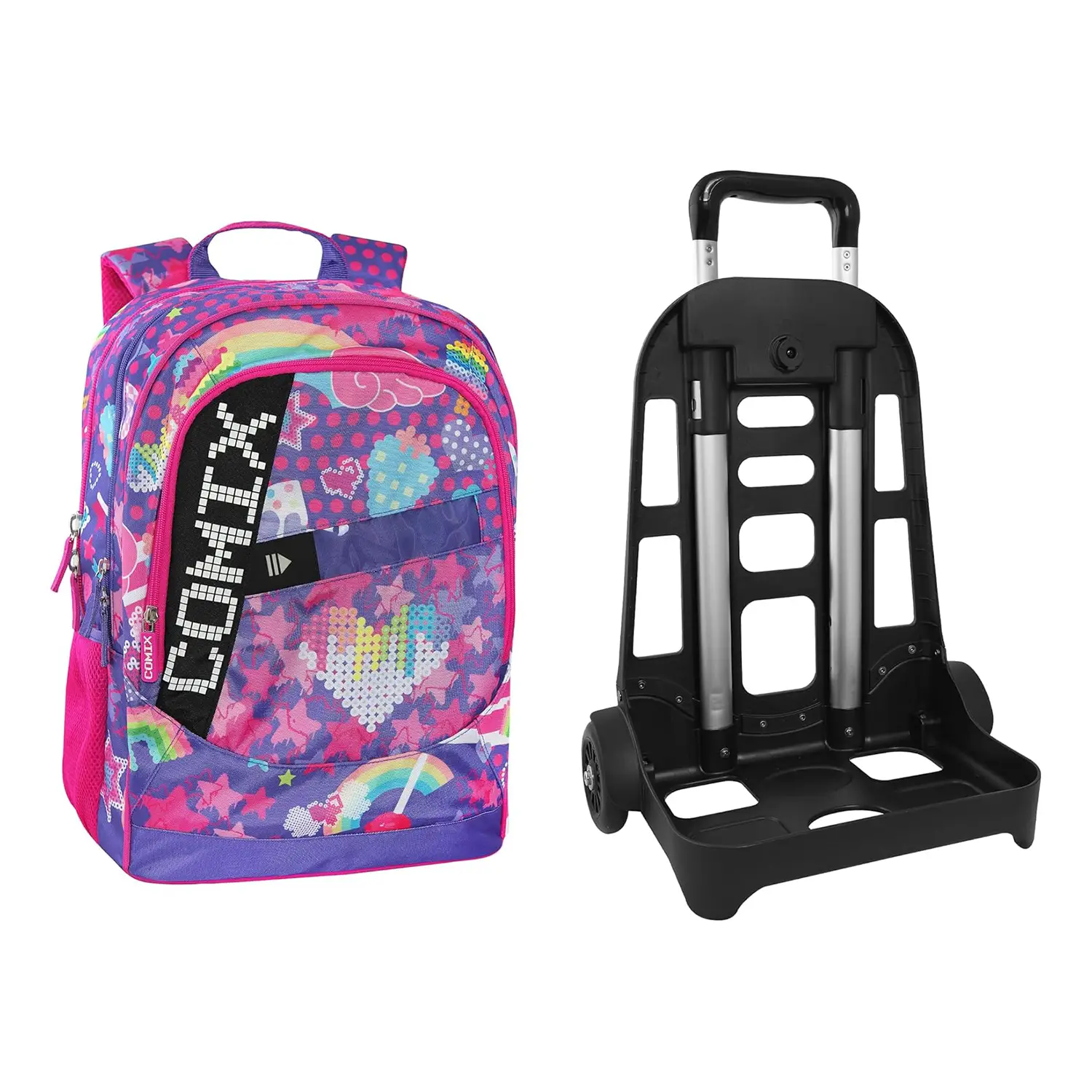 Lo zaino scuola Comix Ultra Bright con trolley staccabile combina design moderno e funzionalità avanzate. Perfetto per studenti dinamici che vogliono distinguersi con originalità.