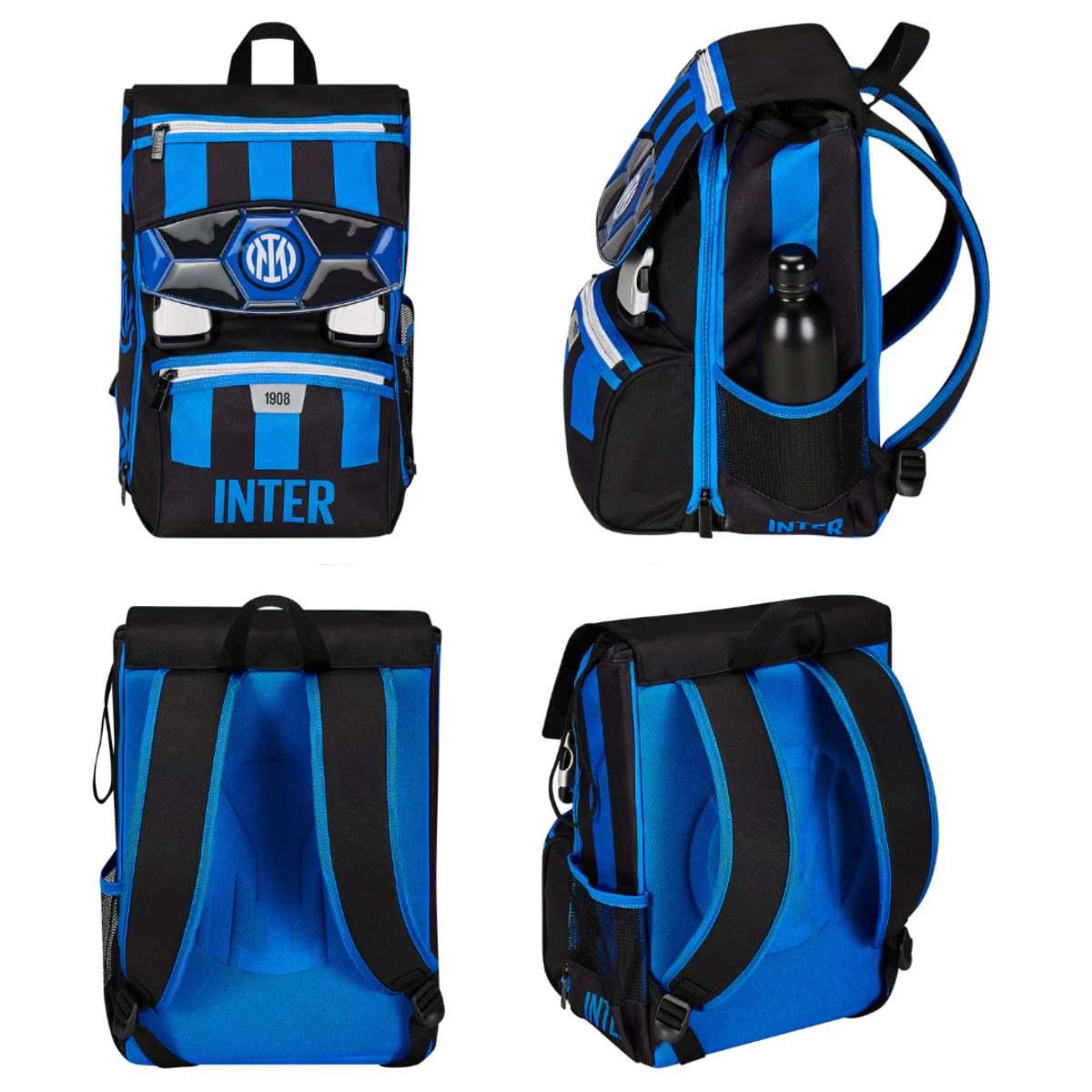 Lo Zaino Estensibile INTER ha un ampio doppio scomparto il cui spazio interno si può facilmente moltiplicare grazie alle pratiche zip laterali. Dentro ci puoi mettere davvero tutto quello che ti serve, potendo sfruttare anche la comoda tasca frontale e la tasca laterale in rete portaborraccia. Lo schienale preformato e gli spallacci imbottiti regolabili lo rendono molto comodo da indossare sulle spalle.